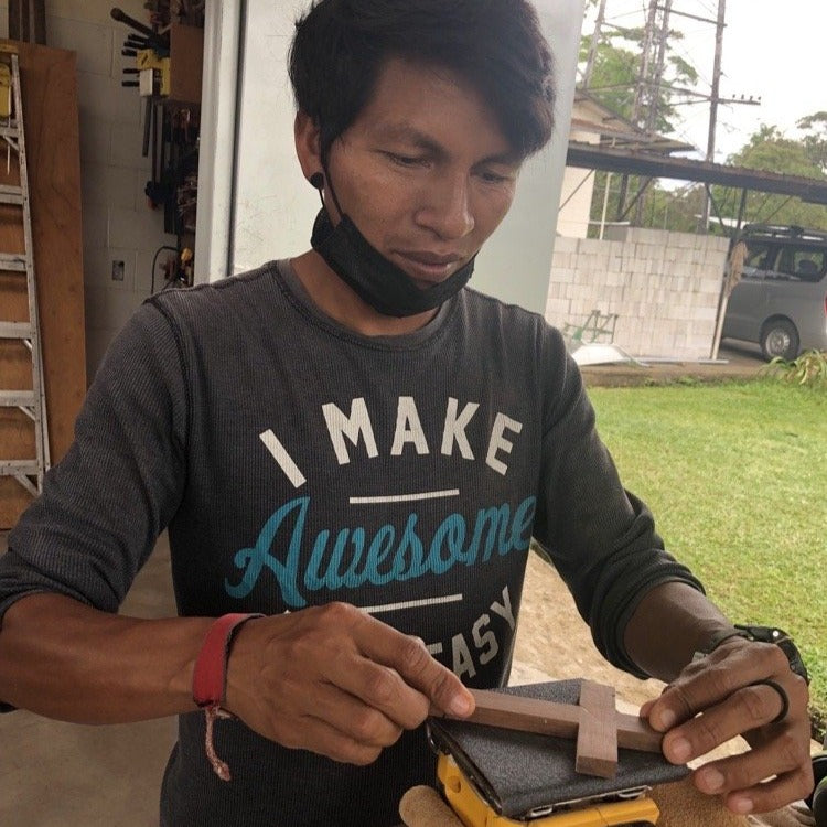 These crosses are handmade from the wood of Nate Saint's house in Ecuador. They are handcrafted by the descendants of the first generation of Waodani believers. Selling these crosses, helps their continued ministry in the jungles of Ecuador. Cross is 4 x 6 inches.