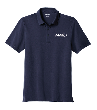 OGIO Limited Polo in cotton, embroidered with the MAF logo.