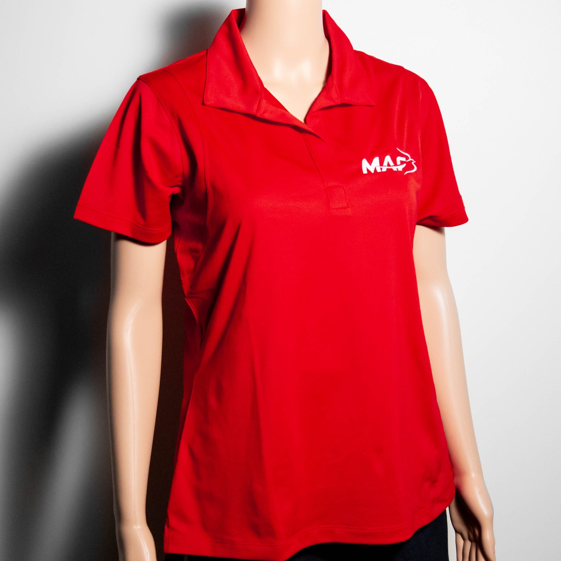 Wear the MAF logo with pride in this women's polo shirt designed to fit comfortably in any environment. MicroFiber polyester polo shirt with moisture management and anti-microbial finish. Wicks moisture away from your skin and provides odor control. Hemmed sleeves and bottom with side vents. Wrinkle resistant.